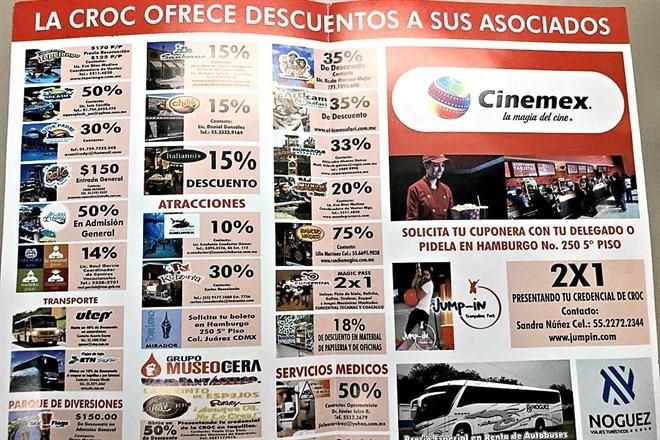 Los brigadistas entregan folletos con la foto impresa del líder sindical Isaías González. Ahí se indica que el “Programa de Cultura, Recreación y Esparcimiento” de la CROC facilita acceso a bajo costo a espacios recreativos “buscando la unidad familiar”.