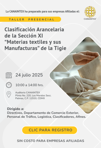 Taller Presencial – Clasificación Arancelaria de la Sección XI “Materias Textiles y sus Manufacturas” de la Tigie