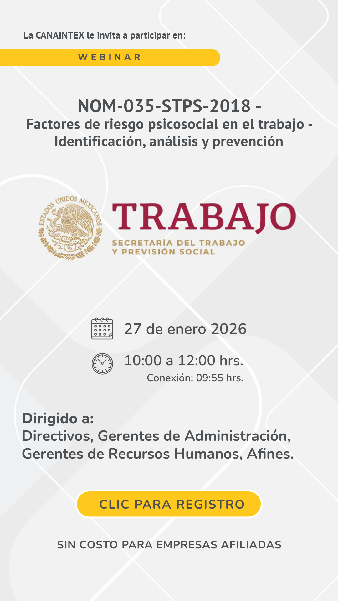 Si tiene alguna duda o comentario, favor de contactar al Ing. Gerardo Pérez, Director de Relaciones Institucionales al correo atencionasocios@canaintex.org.mx o al teléfono 55 5280 8637 Ext. 3000.