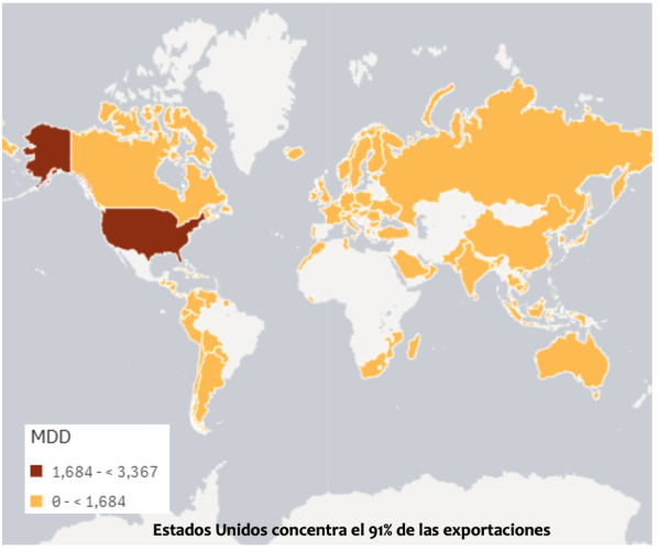 Estados Unidos concentra el 91% de las exportaciones
