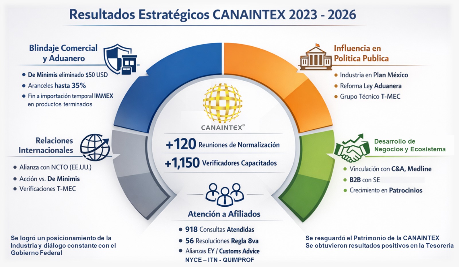 LA CANAINTEX tuvo una participación protagónica en las modificaciones a la Ley Aduanera publicadas en noviembre de 2025, las cuales integraron nuevos puntos de trazabilidad, incrementaron la fiscalización y determinaron una mayor responsabilidad directa para los agentes aduanales por la información en los despachos.
