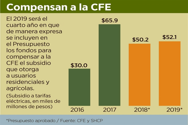 Este será el cuarto año consecutivo en que de manera expresa se incluyan los fondos para compensar a CFE Suministro Básico el subsidio que se otorga a usuarios residenciales y agrícolas.